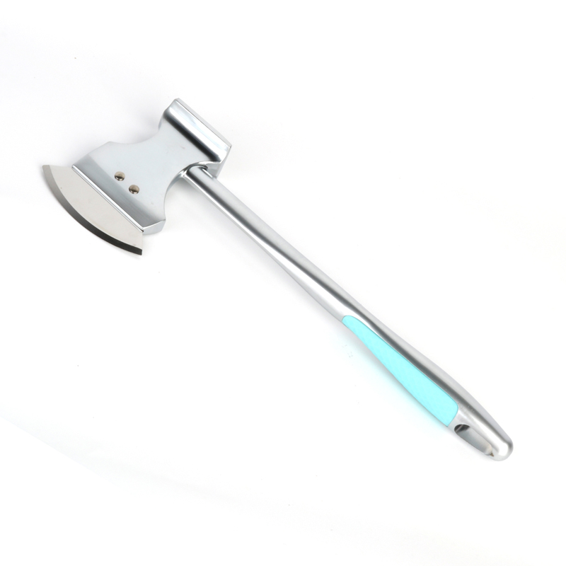 ແຜ່ນຕັດຂອງເຄື່ອງຕັດ pizza ແມ່ນເຮັດຈາກສະແຕນເລດ 304 ທີ່ມີຄຸນນະພາບສູງ, ແລະການອອກແບບຂອງມັນຖືກດົນໃຈຈາກຮູບຮ່າງຂອງຂວານ, ເຮັດໃຫ້ມັນມີລັກສະນະປະຕິບັດແລະດຶງດູດສາຍຕາຫຼາຍຂຶ້ນ. ເຄື່ອງມືມີນ້ໍາຫນັກປານກາງ, ເຮັດໃຫ້ມັນງ່າຍຕໍ່ການໃຊ້ແລະຫລາກຫລາຍໃນຫນ້າທີ່ຂອງມັນ. ບໍ່ວ່າຈະໃຊ້ເປັນເຄື່ອງຂັດຊີ້ນຫຼືສໍາລັບການຕັດ pizza, ແຜ່ນໃບຍັງສາມາດຖືກນໍາໃຊ້ເພື່ອຕັດຊີ້ນຫຼືມີດຜັກ. ໝາກ ໄມ້ເມື່ອບໍ່ມີມີດອື່ນໆ.