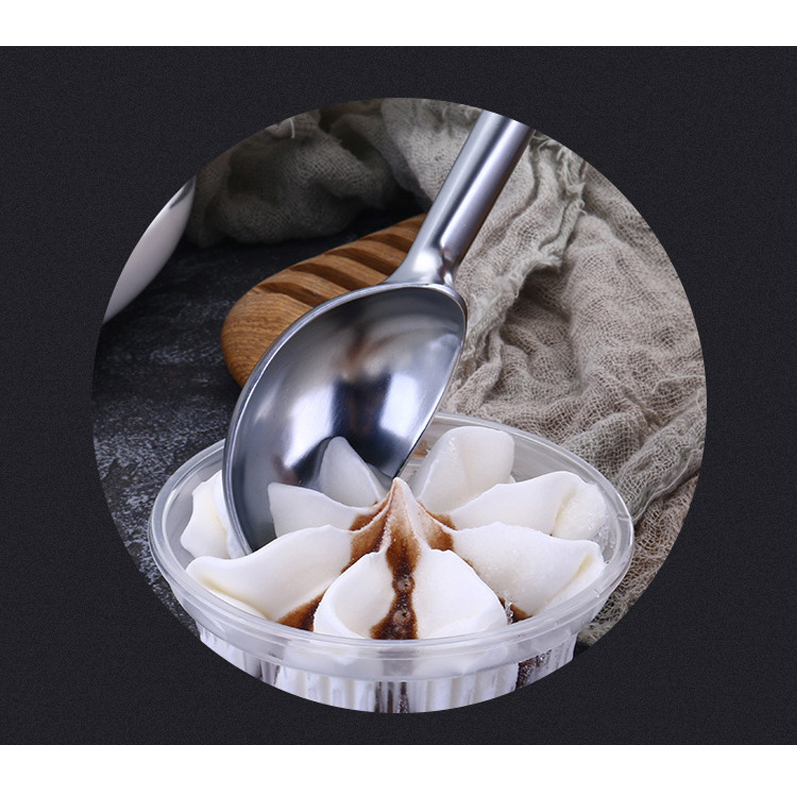 ບ່ວງຕັກກະແລັມສັງກະສີນີ້ ມີມືຈັບທີ່ສະດວກສະບາຍ ຜະລິດຈາກໂລຫະປະສົມສັງກະສີຊັ້ນນໍາ ຜ່ານການຫລໍ່ຕາຍຢ່າງບໍ່ມີຮອຍຕໍ່, ຮອຍແຕກມີຂອບຮູບຊົງລຽບບໍ່ມີມຸມແຫຼມ, ຮັບປະກັນປະສົບການການຈັບເປັນມົນ, ເຖິງວ່າຈະມີຄວາມຍາວ 16.5 ຊມ, ບ່ວງມີນໍ້າໜັກພຽງ 75 ກຣາມ, ຍ້ອນການອົບດ້ວຍມື 6 ຂັ້ນຕອນ ຂັ້ນຕອນການຜະລິດເຕັມຮູບແບບ. ສຳເລັດຮູບ (120°C), ສ້າງໂຄງສ້າງທີ່ທົນທານແຕ່ມີຂົນອ່ອນໆ. ຫົວ scoop ໃຊ້ຮູບຊົງເຮືອເປີດດ້ວຍປາຍມຸມນອກ 108 ອົງສາທີ່ອອກແບບມາຢ່າງເປັນເອກະລັກ, ເຊິ່ງສາມາດຕັດຜ່ານກະແລັມແຊ່ແຂງໄດ້ຢ່າງງ່າຍດາຍ. ທັງສອງດ້ານຂອງຫົວ scoop, ເສັ້ນໂຄ້ງຂະຫຍາຍຕ່ໍາກວ່າຮ່າງກາຍຕົ້ນຕໍ, ເຮັດໃຫ້ມີການອອກສີຄີມທີ່ບໍ່ມີນ້ໍາທະເລ, ຮັບປະກັນການອອກສີຄີມທີ່ບໍ່ມີນ້ໍາ. ໃຊ້ງ່າຍສຳລັບໃຜ, ໂດຍບໍ່ຄຳນຶງເຖິງລະດັບທັກສະ.